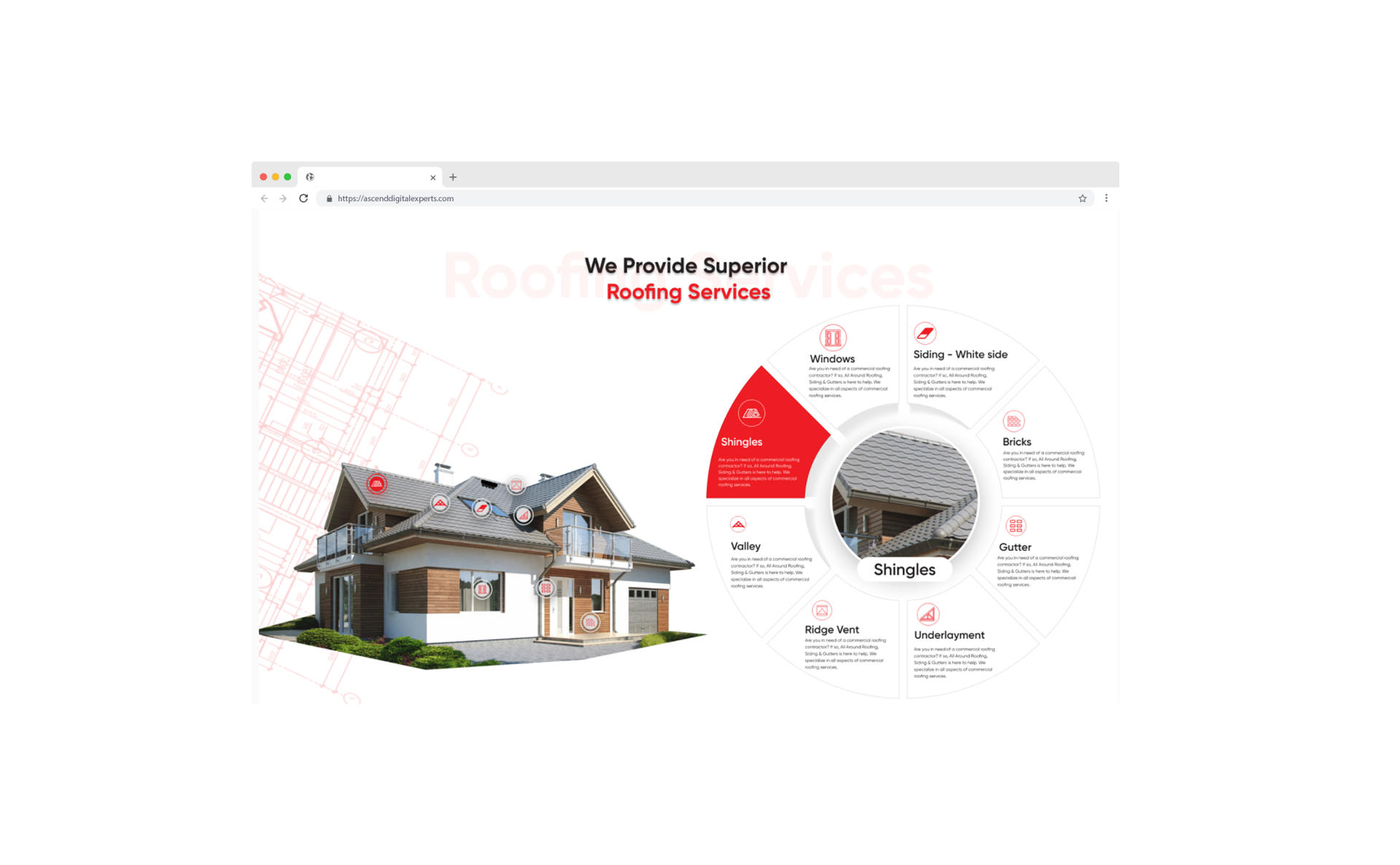 When you choose Ascend Digital Agency as your roofing digital marketing partner, we’ll take care of everything from website development to content creation to Paid Ads management, and more.